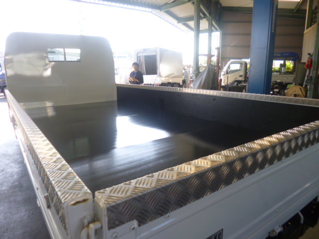 - アオリ上部ステンレス補強・荷台床板張り・アオリ板張り